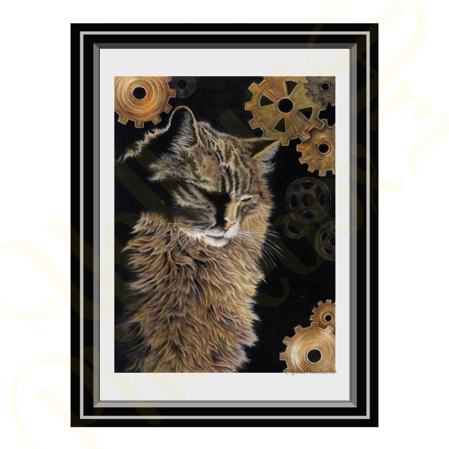 This is a print from my original mixed media painting, ‘Clockwork Kitty’.
