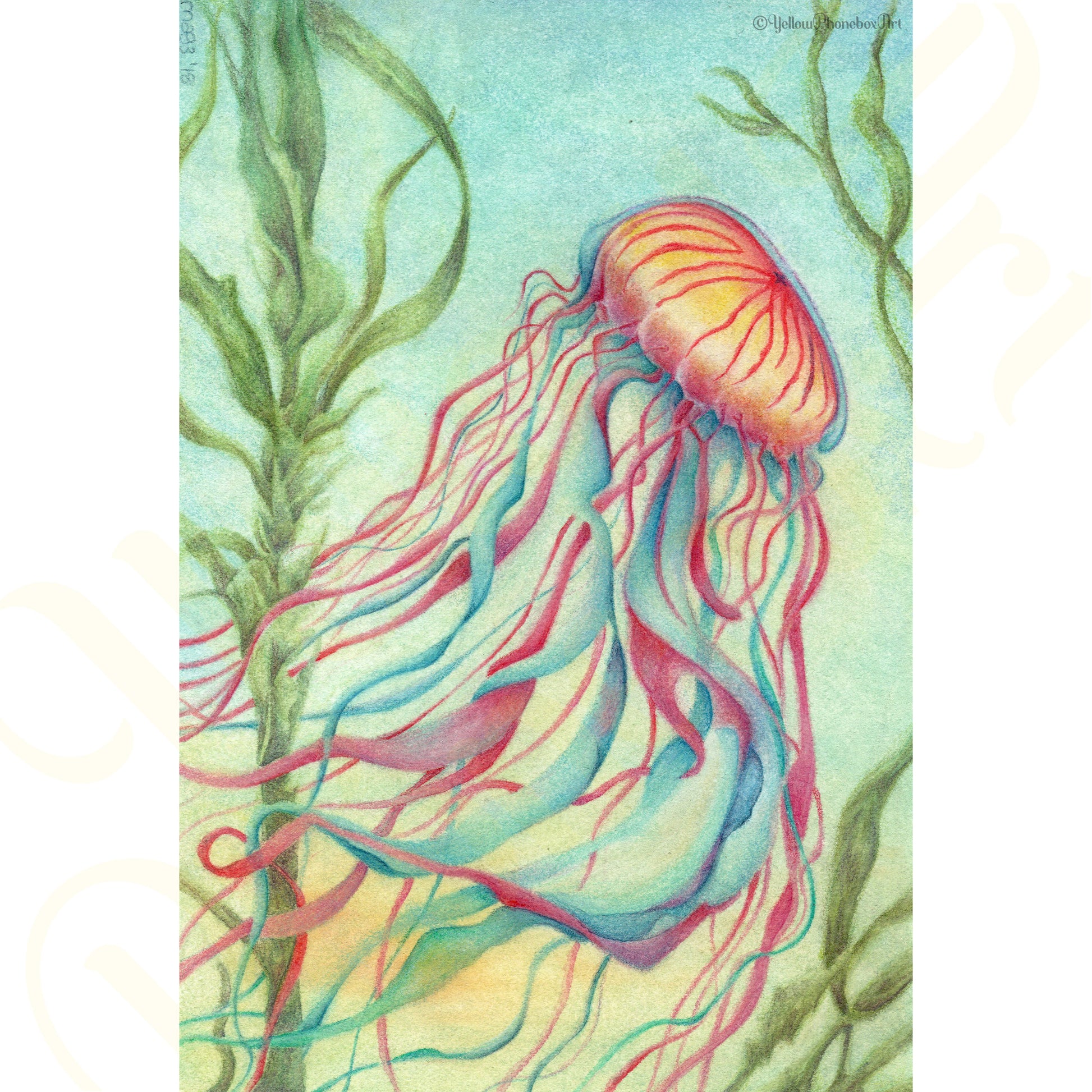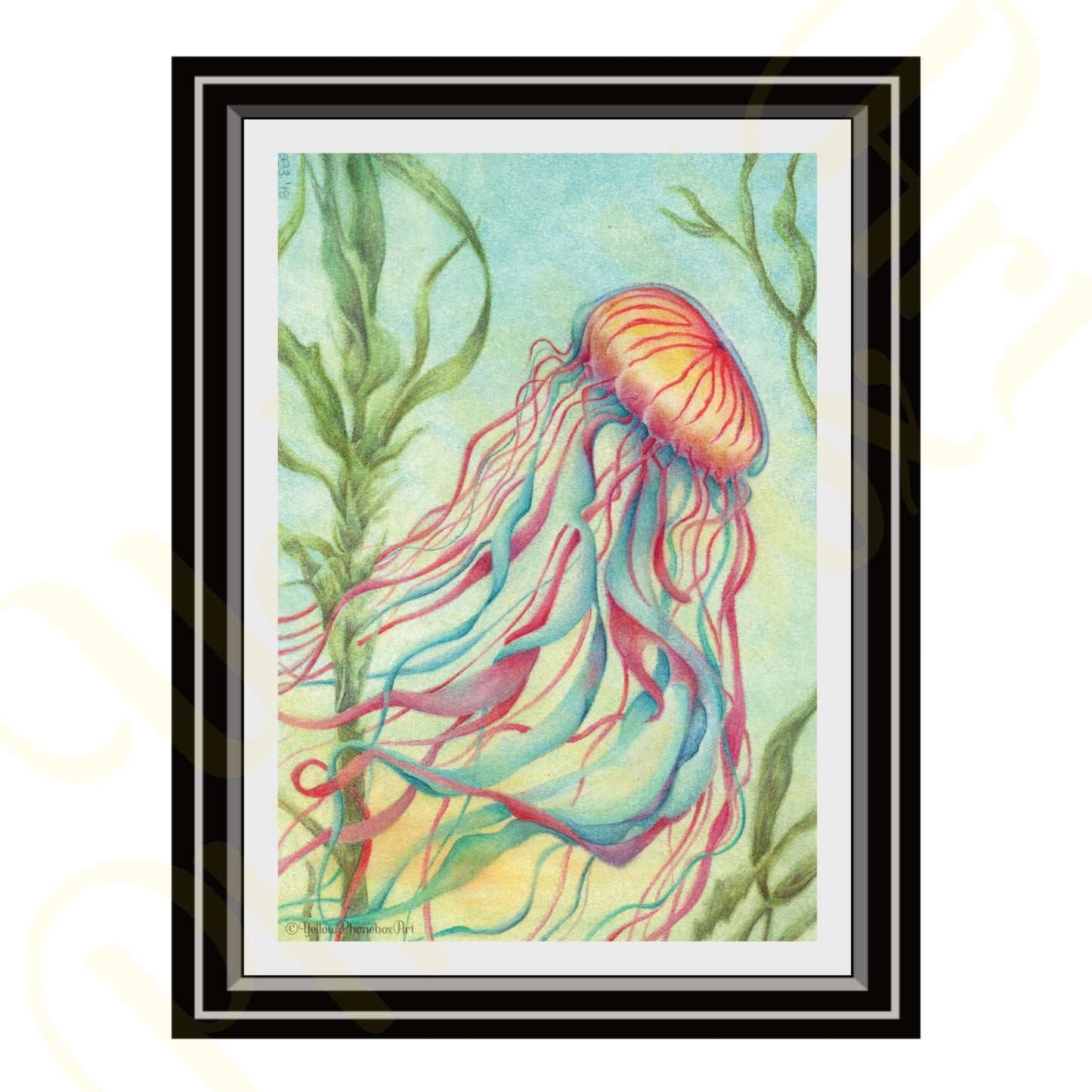 This is a print from my original mixed media painting, ‘Jellyfish’ in which this beautiful delicate jelly is perfectly content to just go with the flow.
