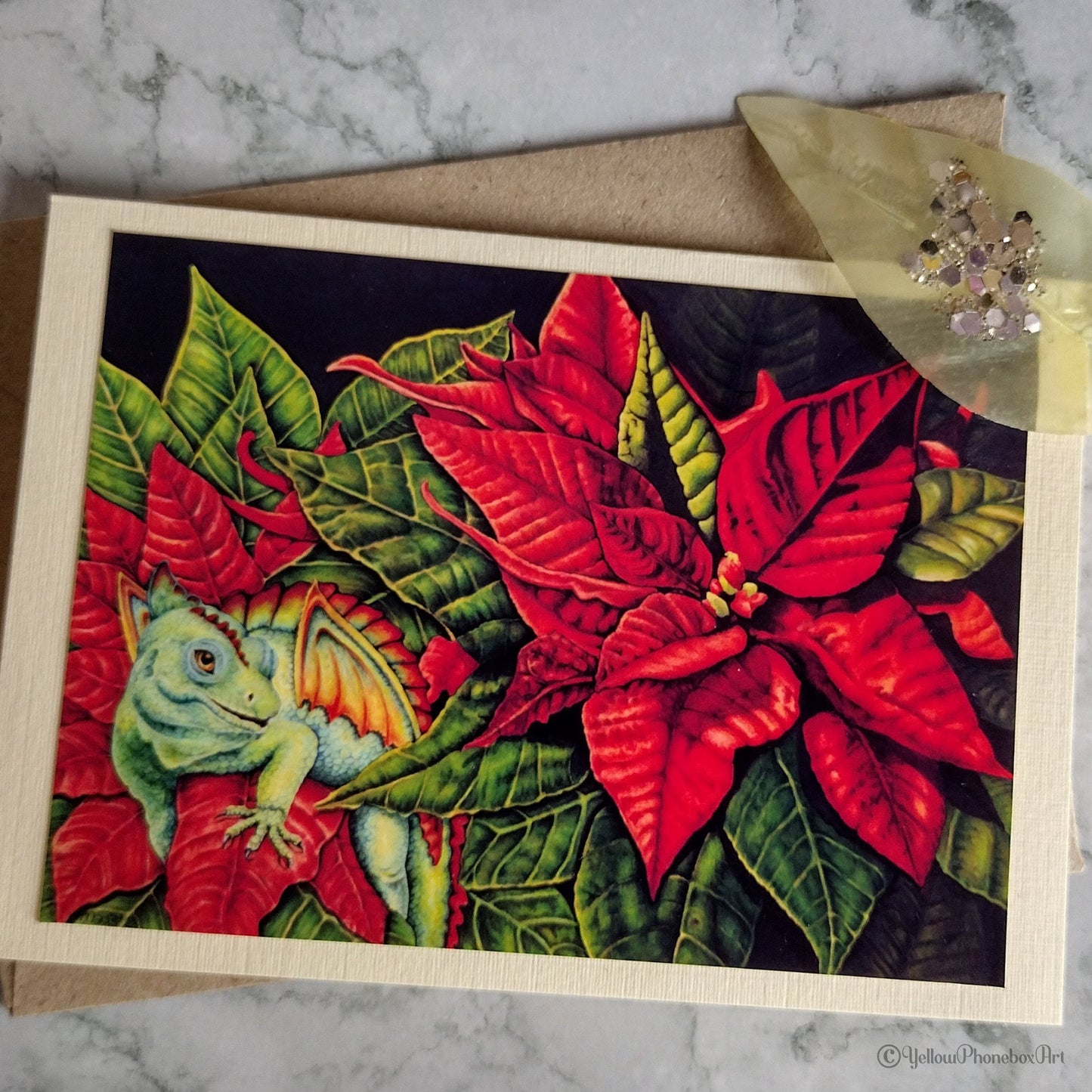 ‘Poinsettia Dragon’ - Handmade Greetings Card With Envelope