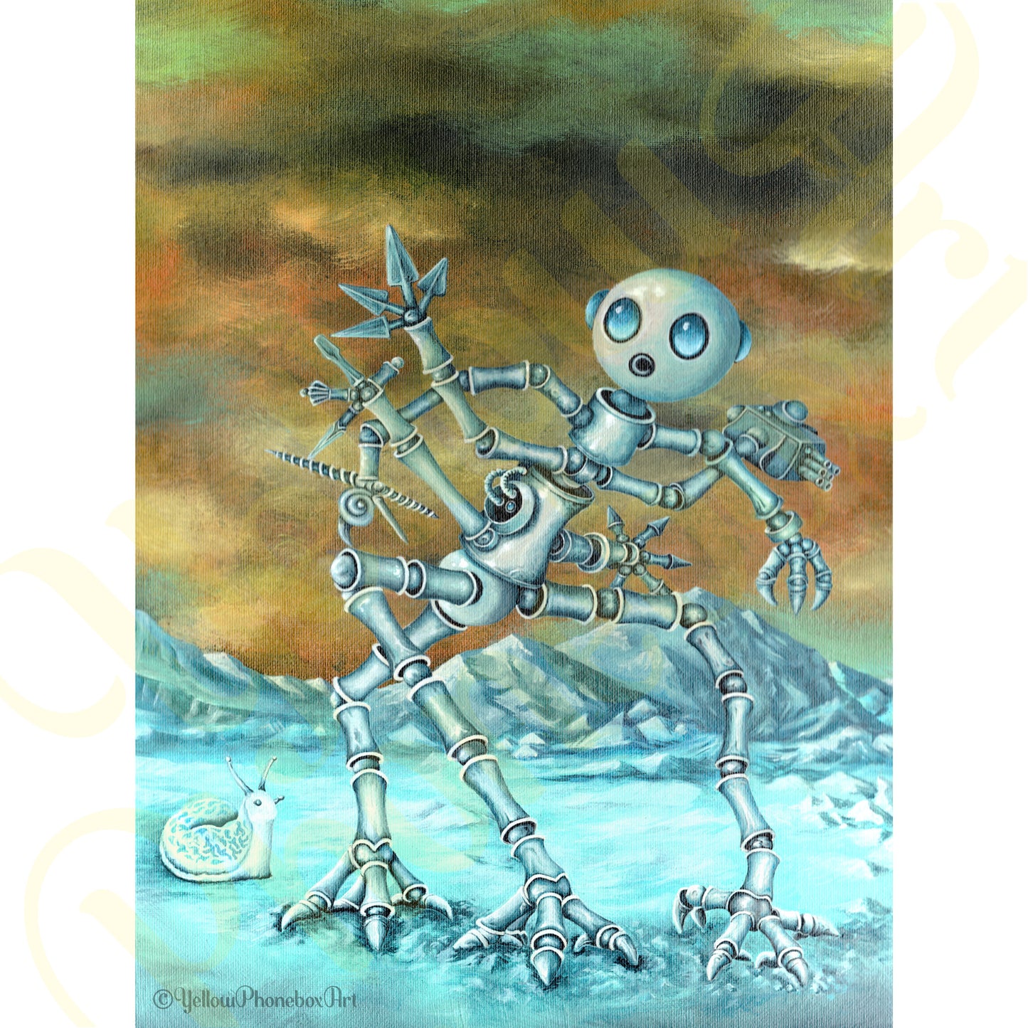 This print is from my original acrylic on canvas board painting, ‘Robo's Day Out’.
