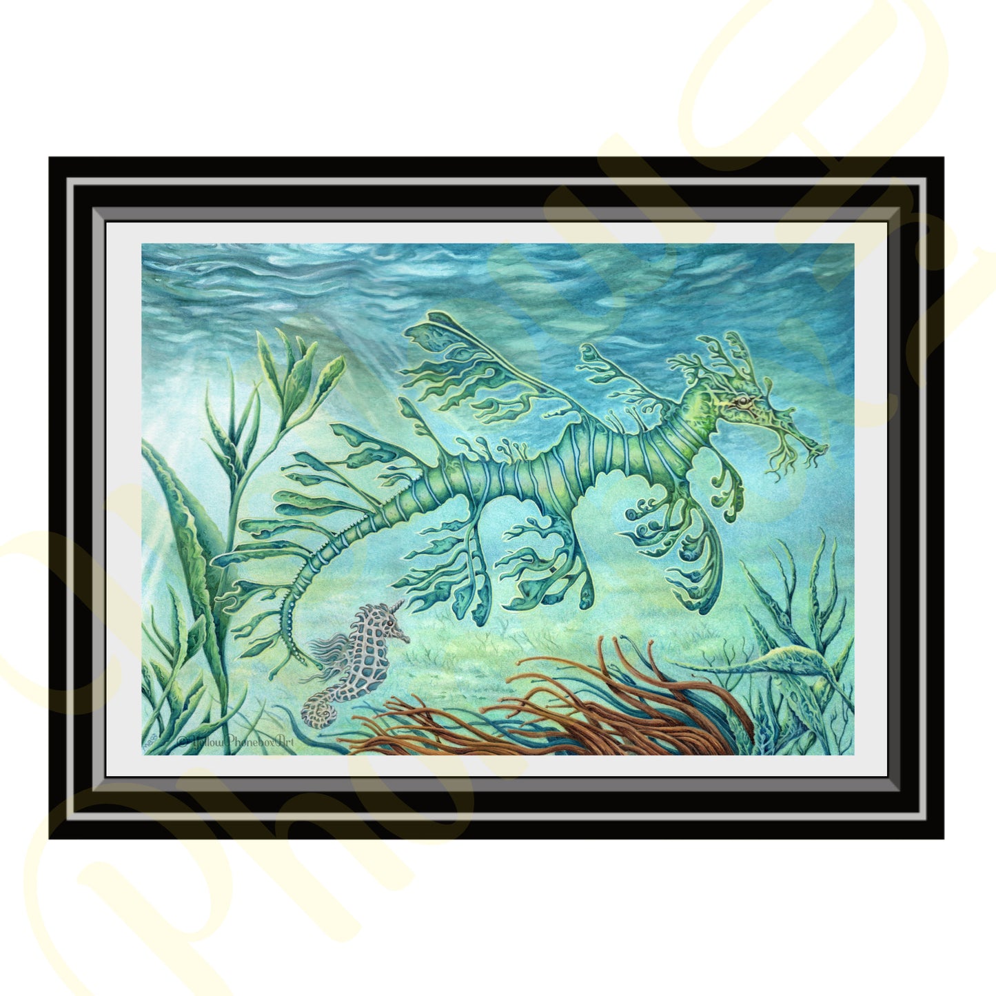 Once in a Blue Moon only the most fortunate may witness the regal Seadragoness meander through her watery realm, always closely followed by her loyal Sea-Unicorn attendant.